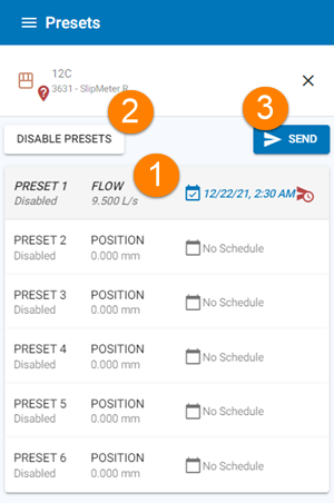 You can disable or enable all presets by using the ENABLE/DISABLE option at the bottom of the presets screen. Tap SEND after toggling this switch to update the site with your change.