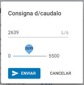 Si está configurando un valor de caudal o de posición, puede usar la Calculadora de caudal y posición y posición para calcular qué posición de la compuerta es necesaria para un caudal determinado, o qué caudal resultará para una compuerta determinada. Pulse el botón
