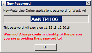 Contact the customer (for example, by phone) and tell them the new password. Click OK to close the New Password window.