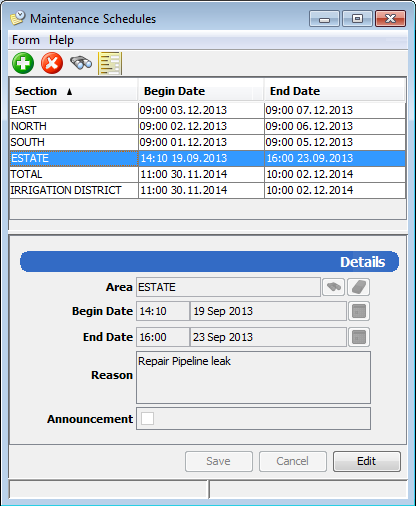 The Maintenance Schedules module is where you can create and manage maintenance schedules and associated outages for your water network. Maintenance schedules are also displayed on the Maintenance tab of the Orders module.