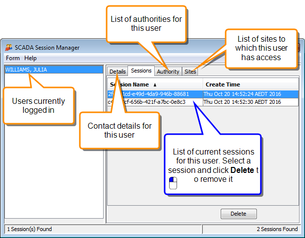 The Session Manager module is where you can view details of all the customers who are currently logged in to the web portal. Use the SCADA Session Manager to: