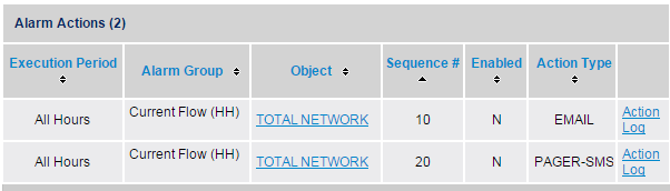 Use this option to view the alarm actions that apply to alarm groups that include this tag. See