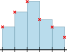 Calculate the area under a graph of the recorded values by assuming that the value changes linearly between readings as shown in this diagram:
