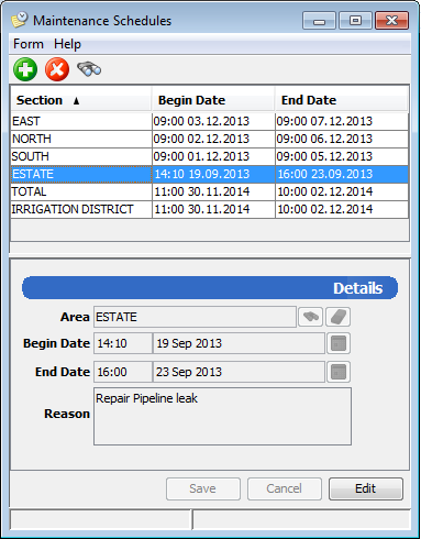 The Maintenance Schedules module is where you can create and manage maintenance schedules and associated outages for your water network. Maintenance schedules are also displayed on the Maintenance tab of the Orders module.