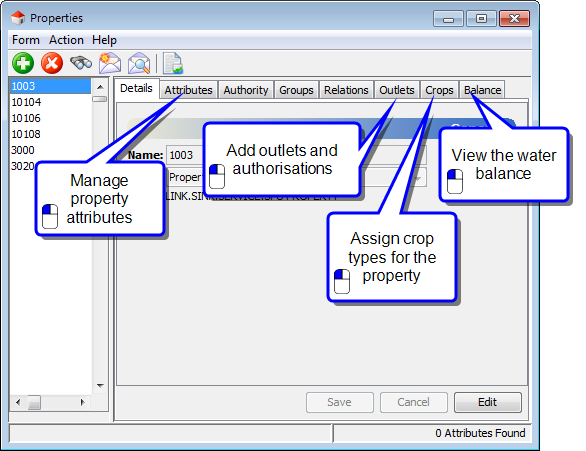 Water from your network is ordered for and delivered to a property. Properties can be associated with one or more outlets through which water is supplied. A property has an OWNER who is authorised to view the water statement for the property.